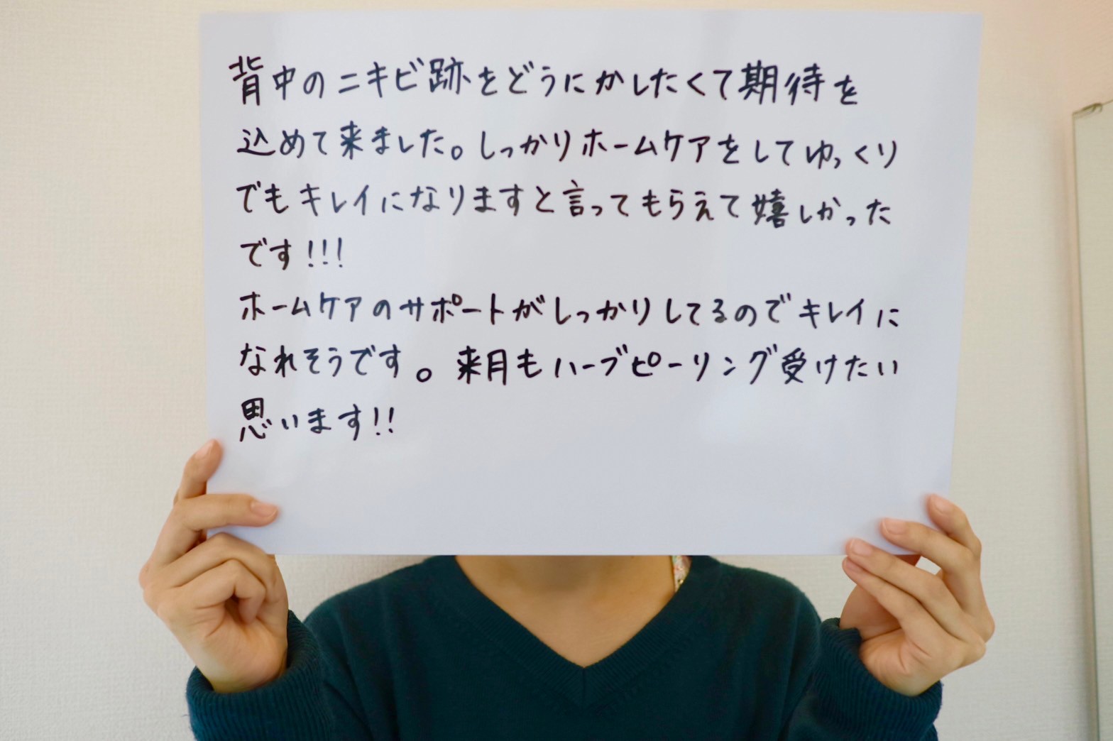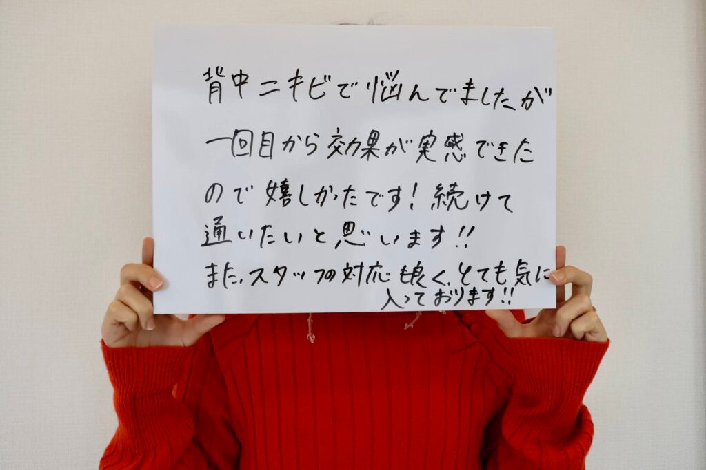 「旦那にも背中が綺麗になったね!と言われた」とお喜びの声をいただきました。