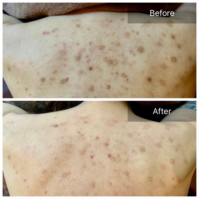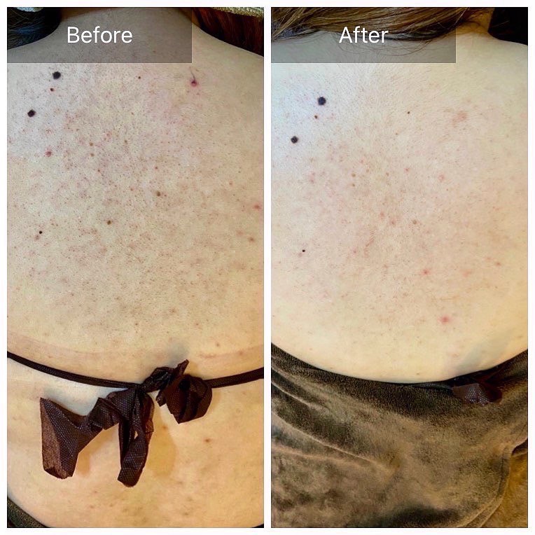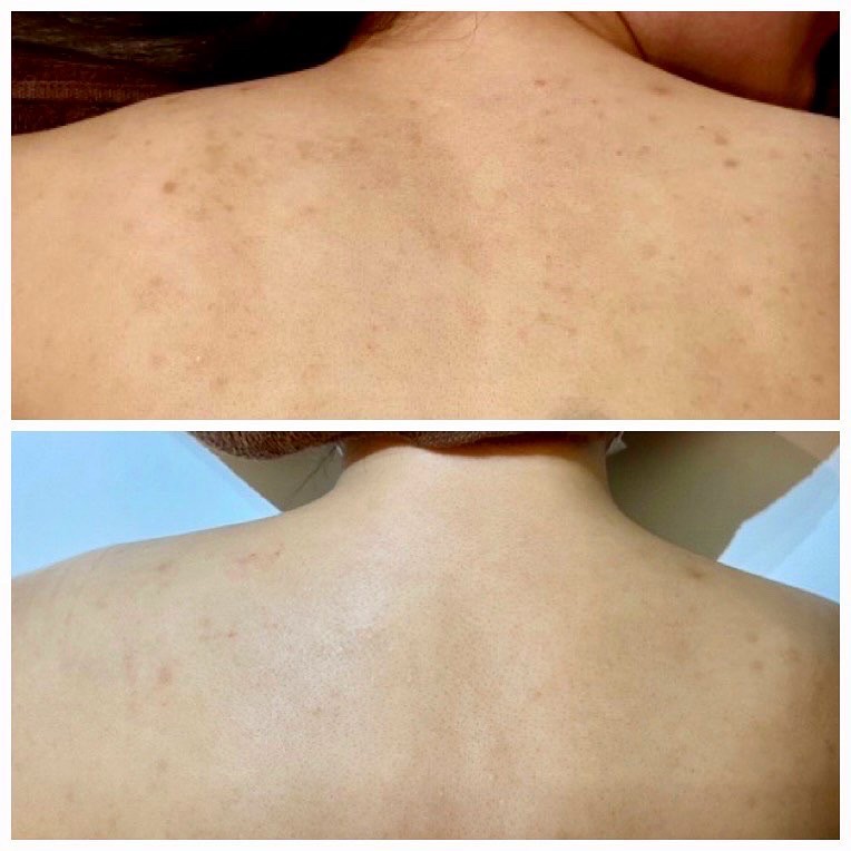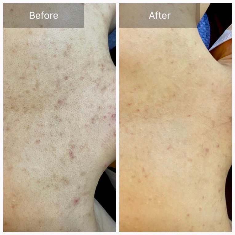 10代から繰り返す背中ニキビ、ニキビ跡に悩まされ、皮膚科でのピーリング施術後にお越しいただきました。