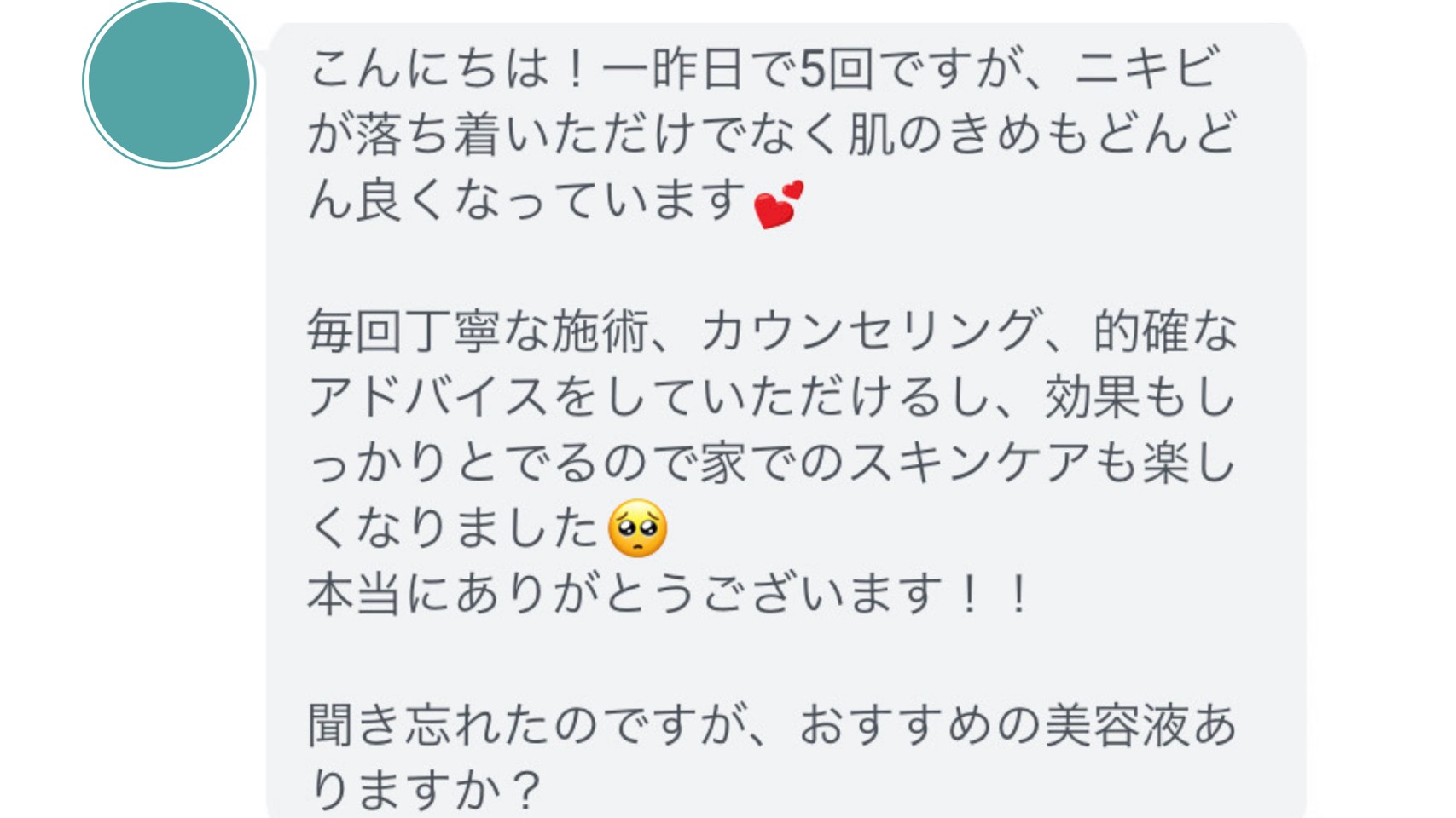 お肌が綺麗になったお客様から、このようなご報告をたくさんいただきます。